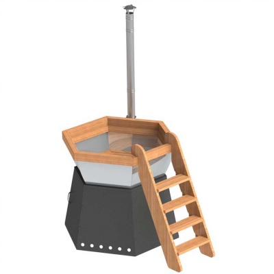 Ш*В: 1750*1670 мм Вес в упаковке 170 кг Объем воды 1000 литров Сталь: AISI 430 толщиной 2 мм Отделка: лиственница Срок службы: более 30 лет |
