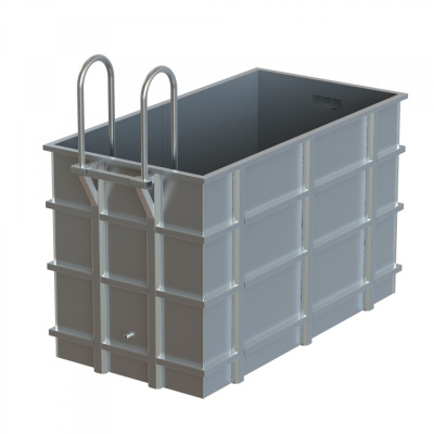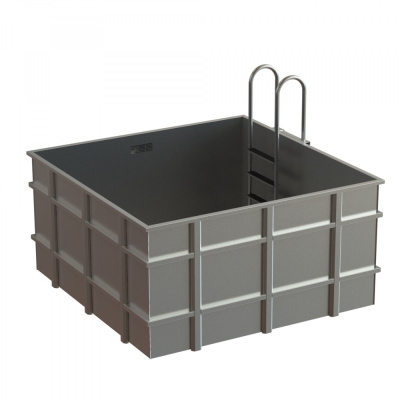 Ш*В: 2150*4000 мм Вес в упаковке 300 кг Объем воды 800 литров Сталь: AISI 430,AISI 304 толщиной 2-3 мм Отделка: лиственница Срок службы: более 30 лет |
