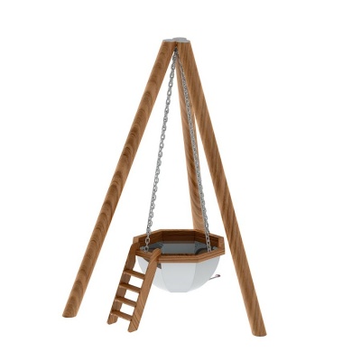 - Подвесные чаны — современные конструкции с опорой на каркас, позволяют установить чан в любом месте участка.