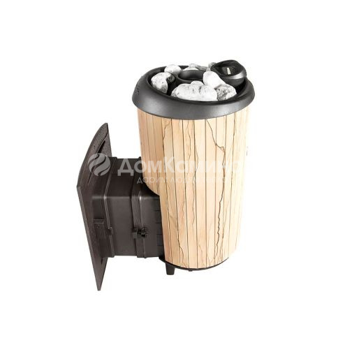 Банная печь Прометалл Атмосфера XL (Про) в ламелях Окаменевшее дерево перенесенный рисунок