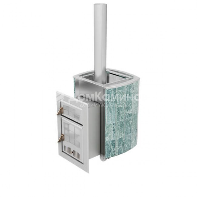 - как и у печи «Чародейка», топливный агрегат печи «Чародейка М» изготавливается из жаростойкой, коррозионнстойкой стали AISI 439, а внешний корпус из натурального камня талькохлорита или змеевика, в эконом варианте – шамотный кирпич;