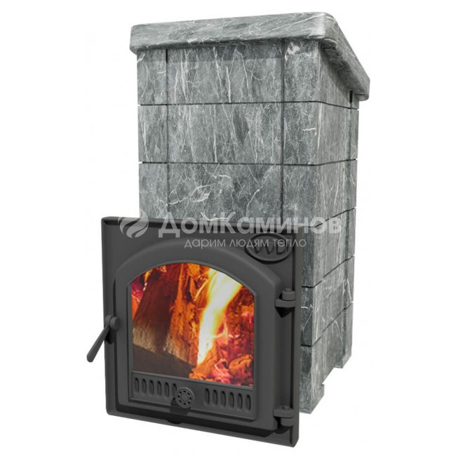 - массивная облицовка из природного камня обеспечивает длительную работу печи в режиме аккумуляции, защищает от теплового излучения и дает мягкие тепловые режимы.