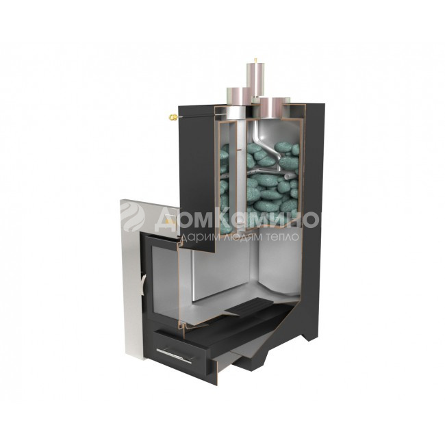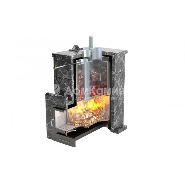 С терморегулирующей задвижкой, позволяющей максимально рационально использовать тепловую энергию и разогревать камни до температур 550-650 °C.