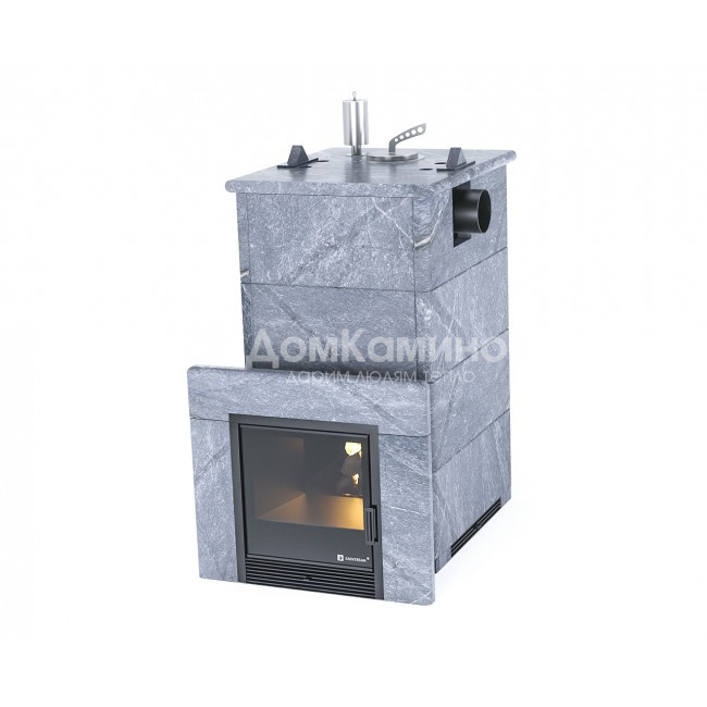 С терморегулирующей задвижкой, позволяющей максимально рационально использовать тепловую энергию и разогревать камни до температур 550-650 °C.
