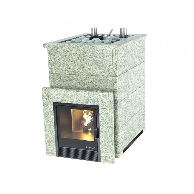 С терморегулирующей задвижкой, позволяющей максимально рационально использовать тепловую энергию и разогревать камни до температур 550-650 °C.