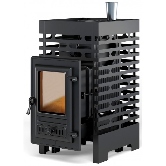 Кожух-сетка размером 445х485 мм и высотой 750 мм изготовлен из стали толщиной 1 мм. Оригинальный прорезной дизайн Астон обеспечивает быстрое движение нагретого воздуха вокруг камней и прогрев парной за короткое время. В нижней части кожуха сделаны планки для камней. Кожух расчитан на укладку 80-90 кг крупных и средних камней.