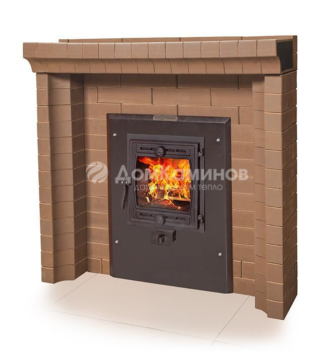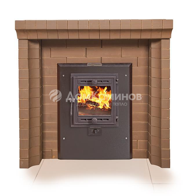 Портал является универсальным. Вырез двухсторонней металлической накладки под печь производится по месту. Подходит для 98% печей