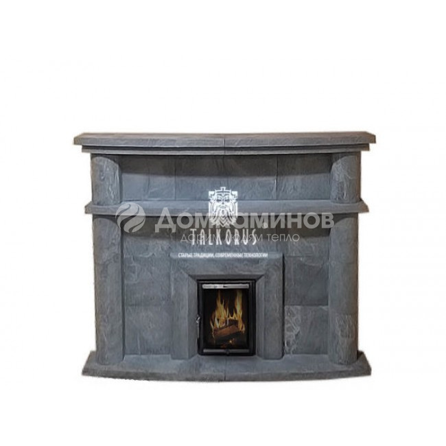 Портал в баню выполнен из талькомагнезита с щеточной обработкой “антик”, массивные круглые столбы подчеркивают скандинавский стиль.
