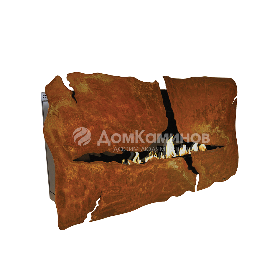 Настенная модель с характерным разрывом металла на фасаде. Возможно изготовление камина из различных материалов: окрашенная сталь, нержавеющая сталь, оксидированная сталь, кортен-сталь. Имеются модели с ровным топочным проемом, без разрыва на фасаде.