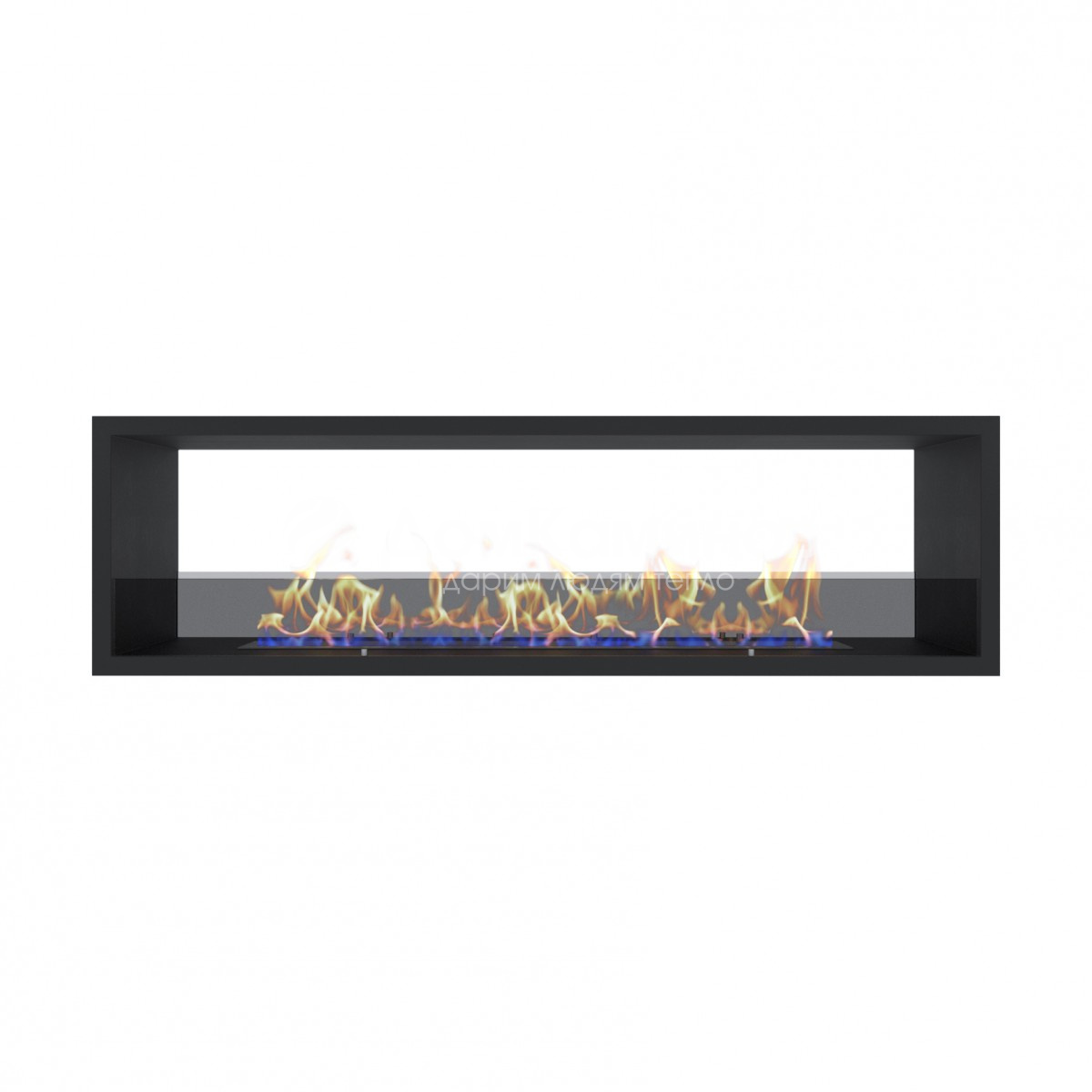 Биокамин изготовлен из термоустойчивой стали толщиной 2 мм и покрашен в черный цвет. Биокамин комплектуется защитным экраном с трех сторон из закаленного стела толщиной 6 мм и топливным блоком из нержавеющей шлифованной стали толщиной 3 мм с возможностью регулировки высоты пламени.