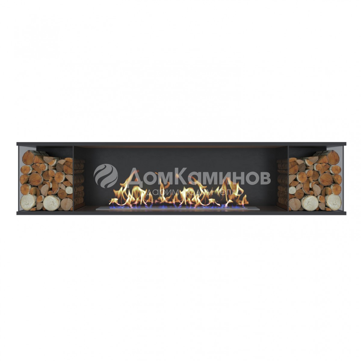 Биокамин изготовлен из термоустойчивой стали толщиной 2 мм и покрашен в черный цвет. Биокамин комплектуется защитным экраном с трех сторон из закаленного стела толщиной 6 мм и топливным блоком из нержавеющей шлифованной стали толщиной 4 мм с возможностью регулировки высоты пламени.