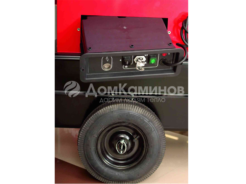 Блок управления с функцией самодиагностики и вместительный топливный бак позволяет длительно эксплуатировать прибор в автоматическом режиме (подключение выносного термостата, защитный термостат от перегрева, поствентиляция камеры сгорания, электронный контроль пламени и др.). Адаптер для крепления двух тепловых рукавов диаметром 400 мм дает возможность поддерживать необходимый температурный режим в двух помещениях одновременно. Мобильные версии нагревателей стандартно комплектуются пневматическими шасси с тележкой.