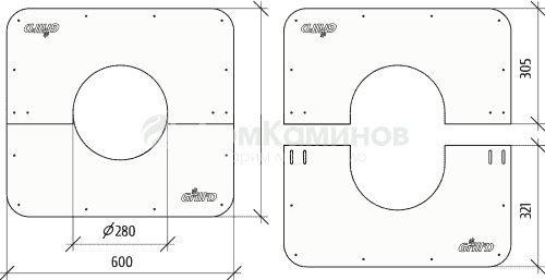 Декоративно-защитный элемент, используется в местах разделки дымового канала, установленного в проемах стен, перекрытий и перегородок.- D280 мм
