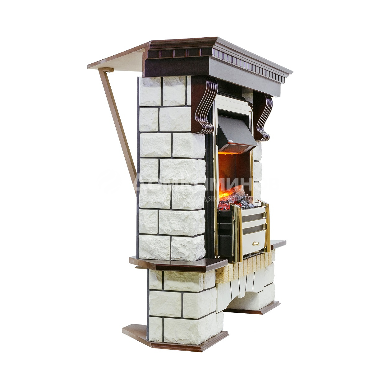Боковые стенки портала Pierre Luxe облицованы плиткой под натуральный камень, а столешница и другие декоративные детали отделаны шпоном, цвет которого вы можете выбрать из предлагаемого в спецификации списка.