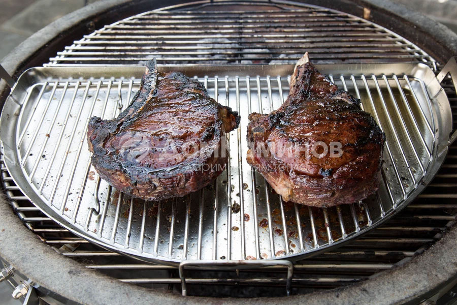 Если поддон с решеткой установить на непрямой жар, то на нём организуется зона подогрева. Пока на сильном жаре готовится основное блюдо, вы сможете подогреть на поддоне гарнир.