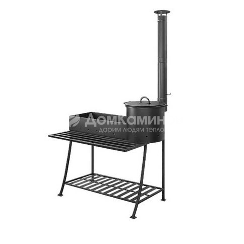 Мангал "Надежный Плюс" получил свое название из-за того, что произведен из 6мм котловой стали, покрытый термостойкой кремнийорганической эмалью, также особенностью мангала является печь под казан с высокой вытяжной трубой самоварного типа. На мангале можно одновременно готовить пищу на шампурах и в казане. Так как мангал стационарный для защиты от осадков в комплекте поставляется крышка для мангальной вставки и печи под казан.
