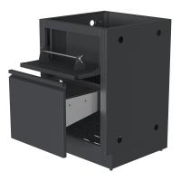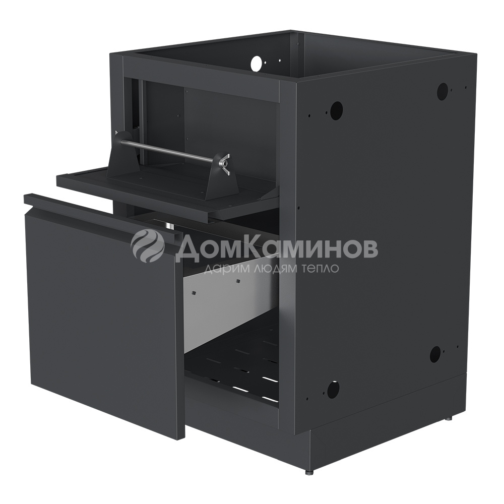 Тумба изготовлена из высококачественной пищевой нержавеющей стали AISI304, окрашенной в матовый черный цвет RAL9004 с текстурой муар.