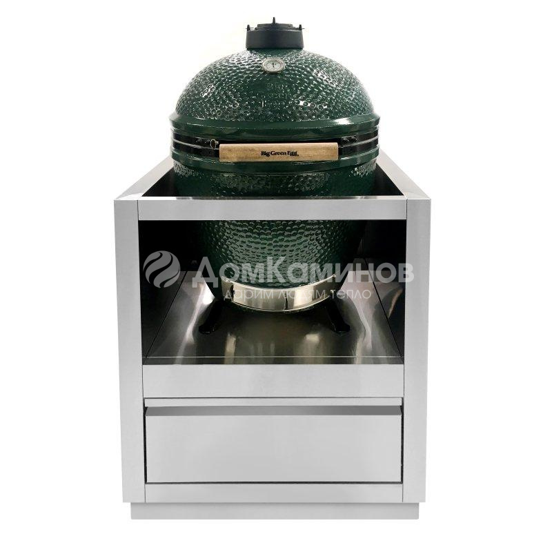Тумба изготовлена из высококачественной пищевой нержавеющей стали AISI304. Предназначена для установки круглых керамических угольных грилей. Оснащена нижним выдвижным ящиком с доводчиком для хранения аксессуаров.