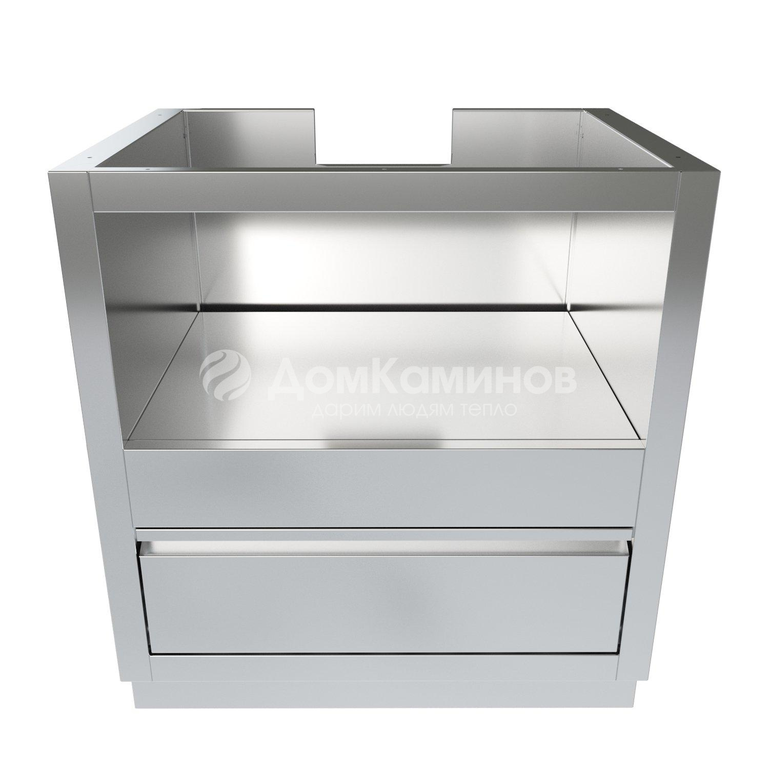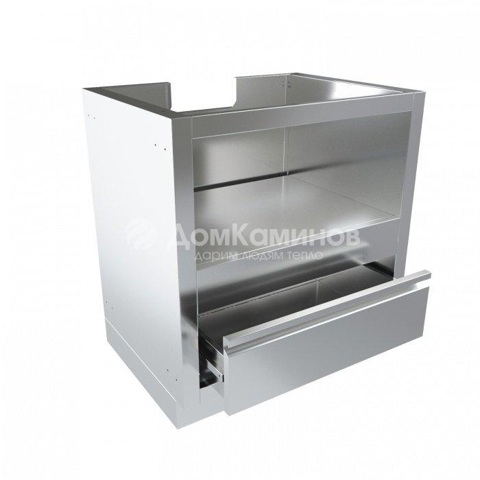 Тумба изготовлена из высококачественной пищевой нержавеющей стали AISI304. Предназначена для установки овальных керамических угольных грилей. Оснащена нижним выдвижным ящиком с доводчиком для хранения аксессуаров.
