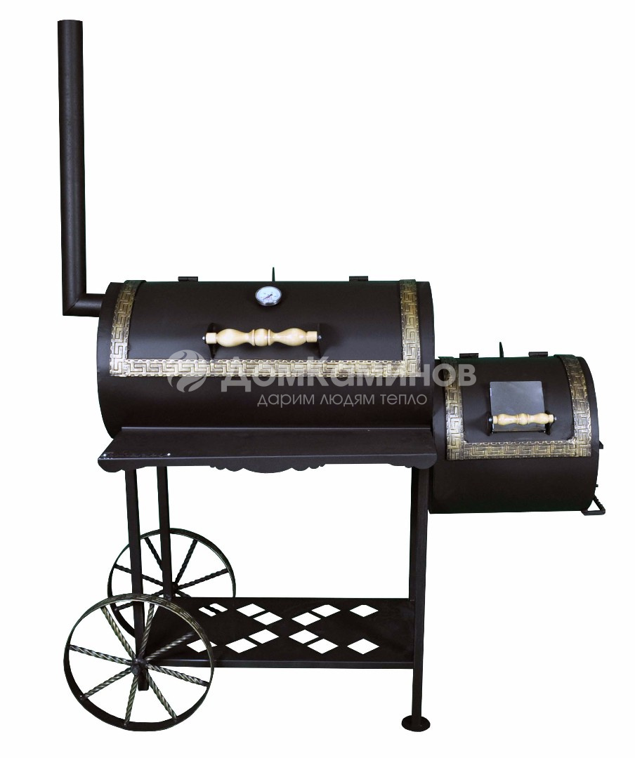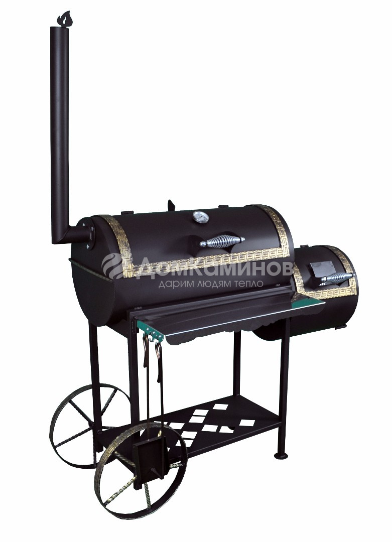3 устройства в одном: коптильня + гриль + мангал! ГАРАНТИЯ ОТ СКВОЗНОГО ПРОГОРАНИЯ - 10 ЛЕТ. Вы можете приготовить шашлык, гриль, барбекю, а также ароматные копчености с помощью нашего уникального смокера. Сталь 3 мм. обеспечивает длительный срок эксплуатации. В комплекте решетка из нержавеющей стали, удобная дровница. Поддон в комплект не входит. Контроль и регулировка температуры приготовления. Можно топить дровами или углем.