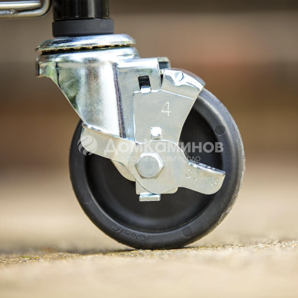 Барбекю устанавливается на стальную раму с колёсиками, позволяющими быстро передвинуть установку в нужное место.