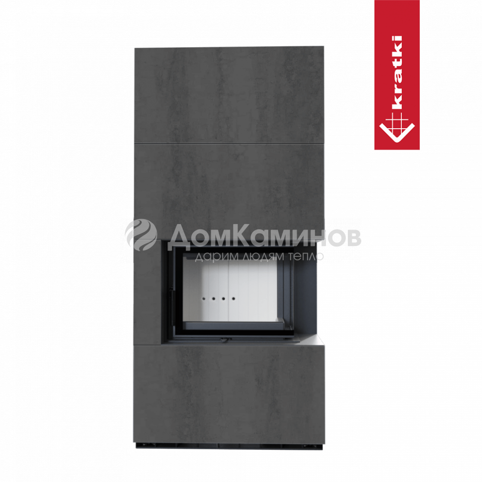 Каминокомплект FLOKI в облицовке NATURALI PIETRA DI SAVOIA ANTRANCITE BOCCIARDATA, угловое стекло справа в Екатеринбурге