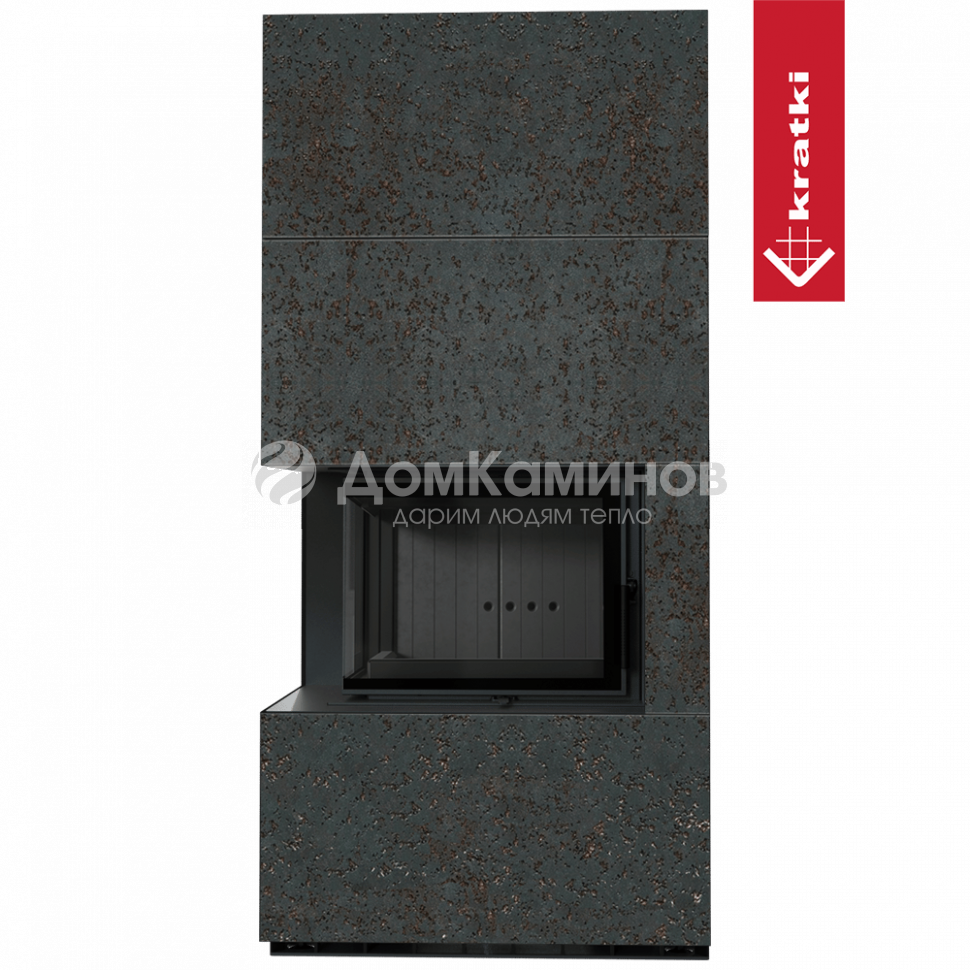 Каминокомплект FLOKI в облицовке OXIDE NERO, угловое стекло слева в Екатеринбурге