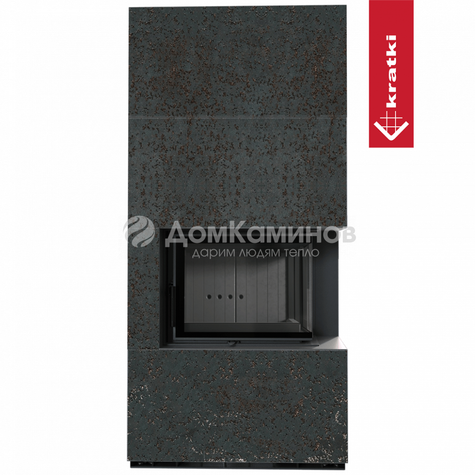 Каминокомплект FLOKI в облицовке OXIDE NERO, угловое стекло справа в Екатеринбурге