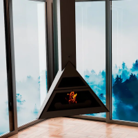 Traforart Admeto Rincon (Трафорарт Admeto угловой) — камин выполненный из стали. Мощность очага — 12.2 кВт, достаточно для помещения в 305 м3. КПД — 77%. Устройство предназначено для размещения в углу, большое фронтальное стекло позволит наслаждаться огнём с любого угла комнаты. Модель с подвесным типом конструкции, крепление к потолку, поэтому камин можно расположить на некотором удалении от стены.