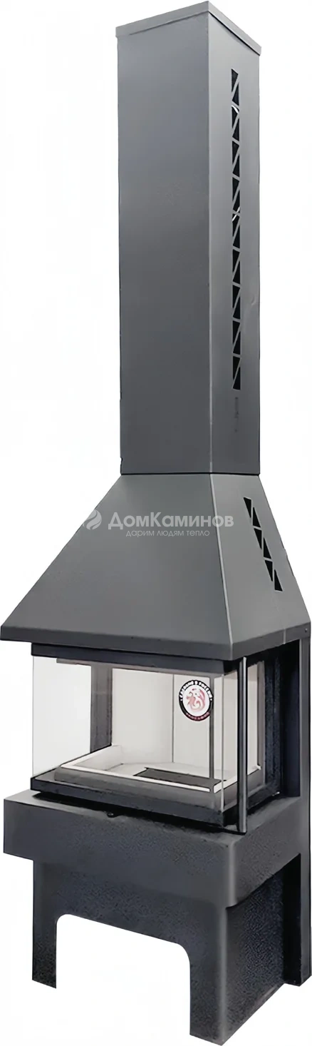 ЭкоКамин Панорама – мощная (10 кВт), но довольно простая в установке (требуется только подключение к дымоходу) и использовании каминная печь с трехсторонним видом на огонь. Дымоход подключается горизонтально либо вертикально. Модель обладает элегантным современным дизайном и высоким КПД (80%). Воздух может подаваться в топку печи извне. Имеется система вторичного дожига. Стальной кожух выполнен в цвете графит. Внутри топка футерована литьевым шамотом.