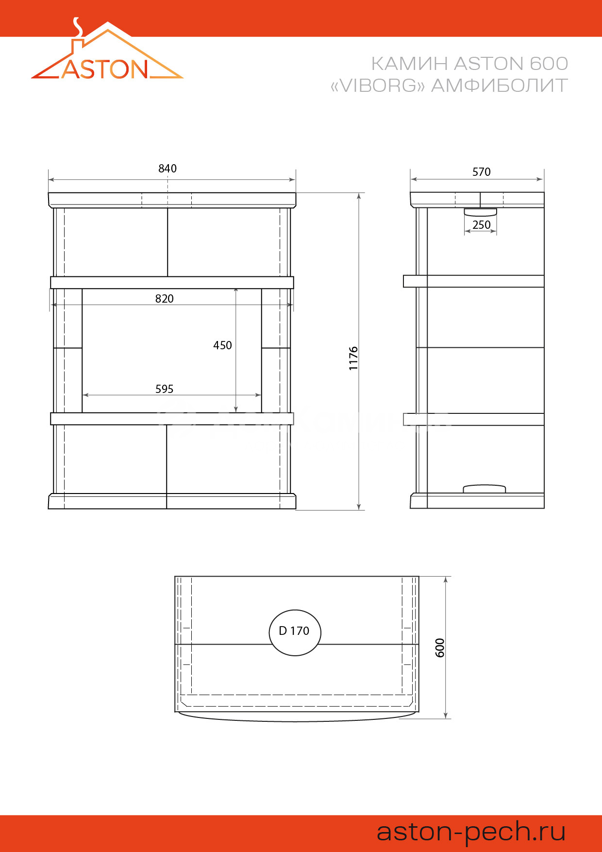 Купить Камин ASTON 600 «VYBORG» Н-1276 Амфиболит диаметр дымохода: 150 мм 00000022832 по выгодной и доступной цене c доставкой по Екатеринбургу и с доставкой по другим городам России, Белоруссии и Казахстана | Звоните в интернет-магазин Дом Каминов