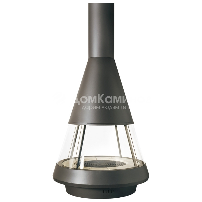 Центральностоящий камин, выполненный в стиле High-Tech, изготовлен из жаропрочной стали. Благодаря оригинальной форме, любоваться огнем можно со всех сторон. Кожух дымохода регулируется по высоте. При помощи встроенной задвижки можно регулировать подачу воздуха. Основание с зольником и декоративными камнями. Камин можно использовать как со стеклом, так и без стекла.