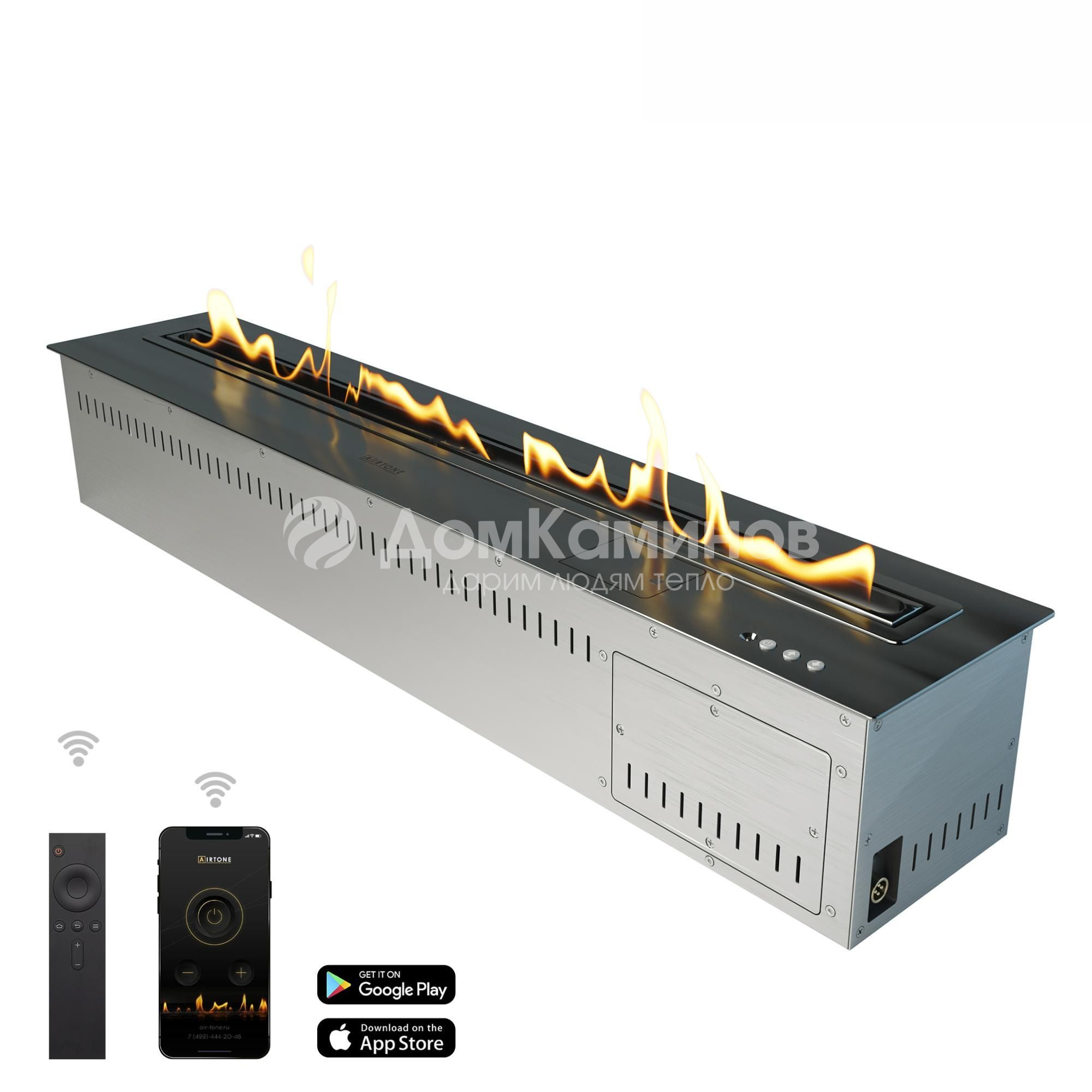 Биокамин Airtone Andalle 1000 - это современный, полностью автоматический и абсолютно безопасный биокамин для установки в квартире или в доме. Камин работает на биоэтаноле и не требует установки дымохода. Камин можно установить в нишу, в портал, или как отдельный объект в центре помещения. Система управления камином позволяет не только дистанционно включать и выключать камин с пульта ДУ или через приложение на смартфоне, но и управлять высотой и интенсивностью пламени. Встроенный насос позволяет заправлять камин без опасения того, что разольётся топливо или произойдёт перелив бака.