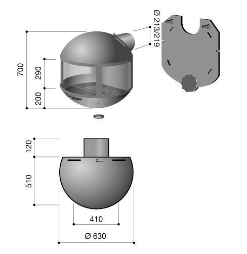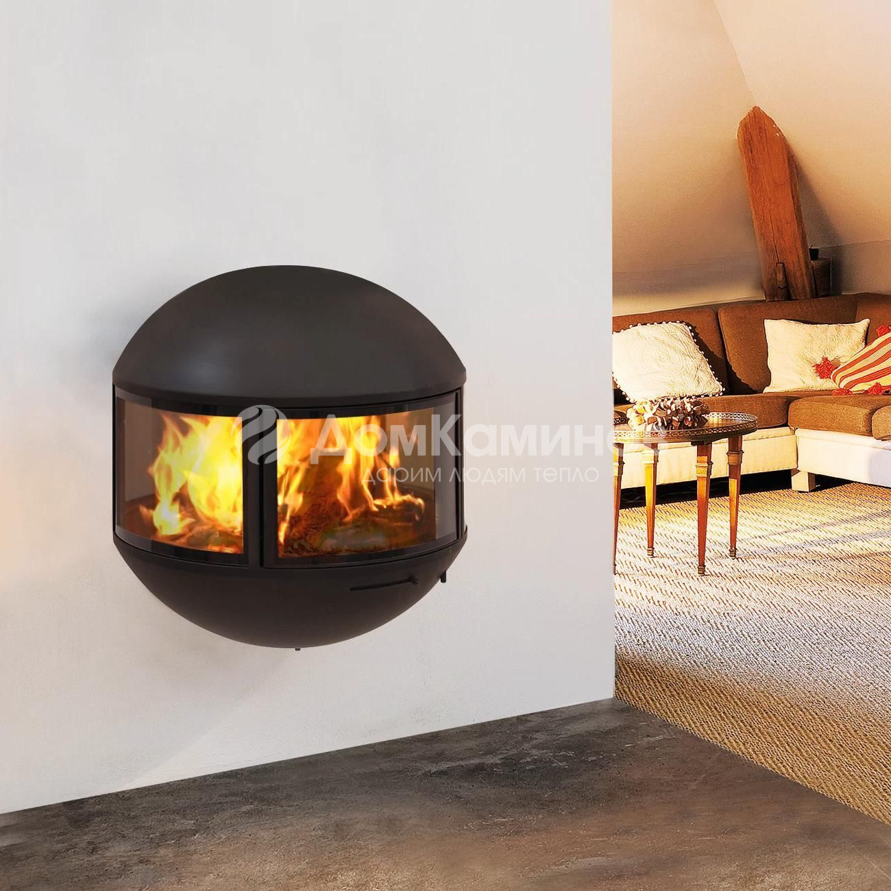Камин подвешивается на стену из негорючих материалов на монтажную пластину, которая входит в комплект поставки. Для обслуживания топочной камеры открывается фронтальная дверца. Два боковых стекла зафиксированы в корпусе. Модель окрашена чёрной термостойкой краской.