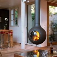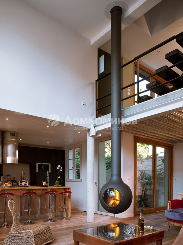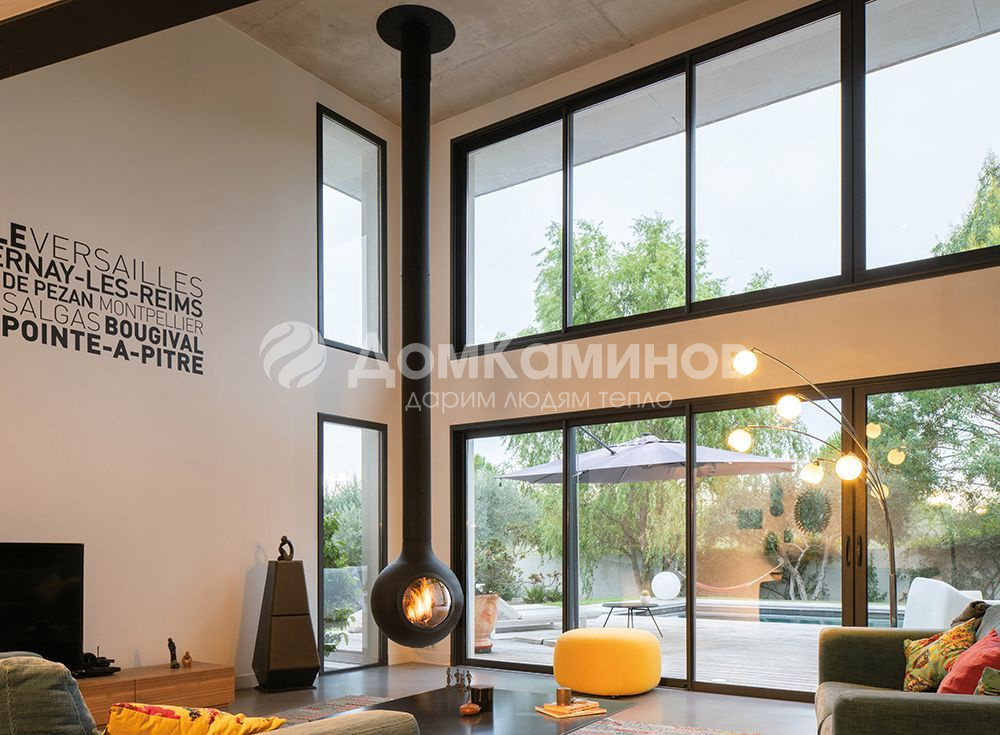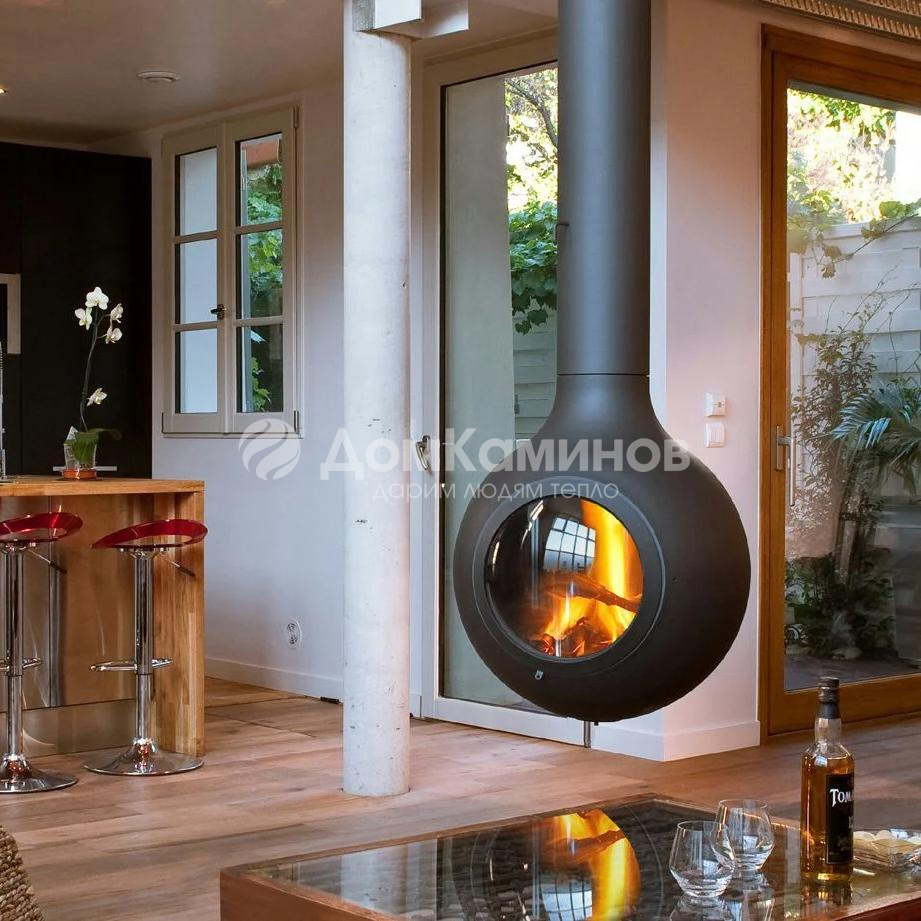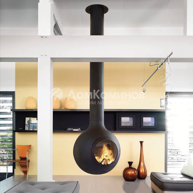 Bathyscafocus hublot - это подвесной центральный камин округлой формы с выпуклой стеклянной дверцей. Модель окрашена чёрной термостойкой краской. Поворотный механизм камина позволяет вращать его на 360 градусов.