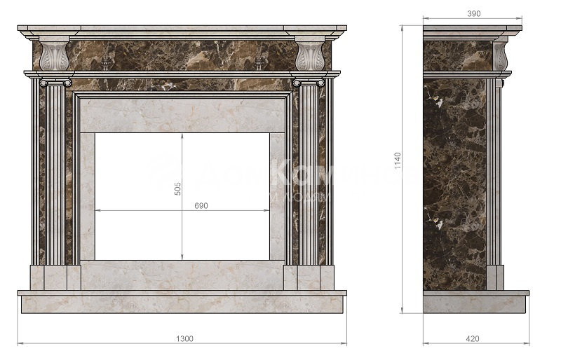 Портал для камина ArteVero Perseus изготовлен из мрамора Galala Beige и Emperador. Модель Perseus, как и все порталы Artevero, классической формы «П». Контрастные цвета мрамора станут идеальным фоном для прихотливой игры пламени. Портал соответствует максимальным размерам под топку 95 x 95 см.