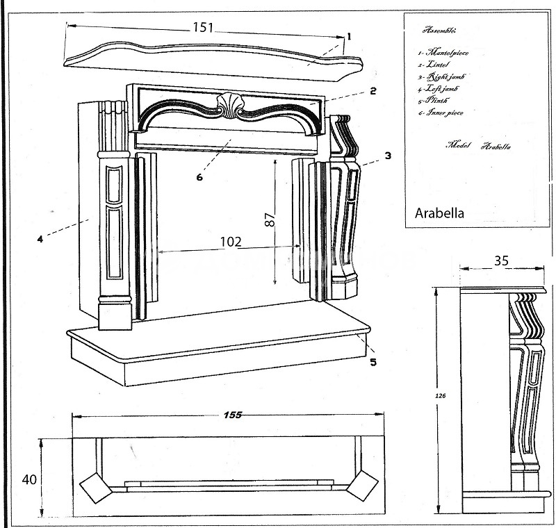 Портал для камина ArteVero Arabella – это декоративная «рамка» внешней части каминной конструкции, обрамляющая каминные топки. Модель Arabella соответствует топкам: 102 x 87 см.