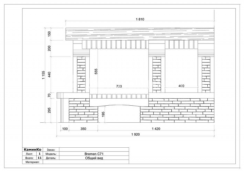 Каминный портал выполнен в рустикальном стиле из натурального камня Du Gard. Плита перед топкой из красного кирпича, полка из бука. К данной модели подходят многие дровяные топки, что позволяет подбирать конфигурацию на свой вкус. В данной модели предусмотрена ниша для размещения предметов интерьера. Внизу дровница.
