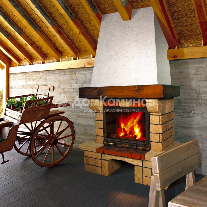 Камин с облицовкой кантри изысканно дополнит собой любое домашнее пространство. Российская компания Sunhill является представителем мирового уровня, поставляющим на европейский рынок качественные модели облицовок и топок. Bergamo – это стильный вариант, который имеет топку из чугуна и практичный вариант облицовки из ракушечника Гард, латвийского доломита и массива дерева в убранстве каминной полки. Эта стильная модель кантри наполнит ваш дом уютными очертаниями, подарит качественный обогрев благодаря топке закрытого характера, а также дополнит совершенную композицию любого плана. Топка закрытого формата является мощным источником тепла благодаря тому, что нет совмещения процесса горения с со свежим воздухом, поэтому дом быстрее сможет наполниться теплом и подарить климатический комфорт. Пристенная модель камина Bergamo оснащена дровницей для хранения топлива. Топка обложена жаропрочным кирпичом. Грубый камень в отделке камина Bergamo говорит нам о высокой степени натуральности и природных очертаний стильного внешнего вида кантри облицовки.