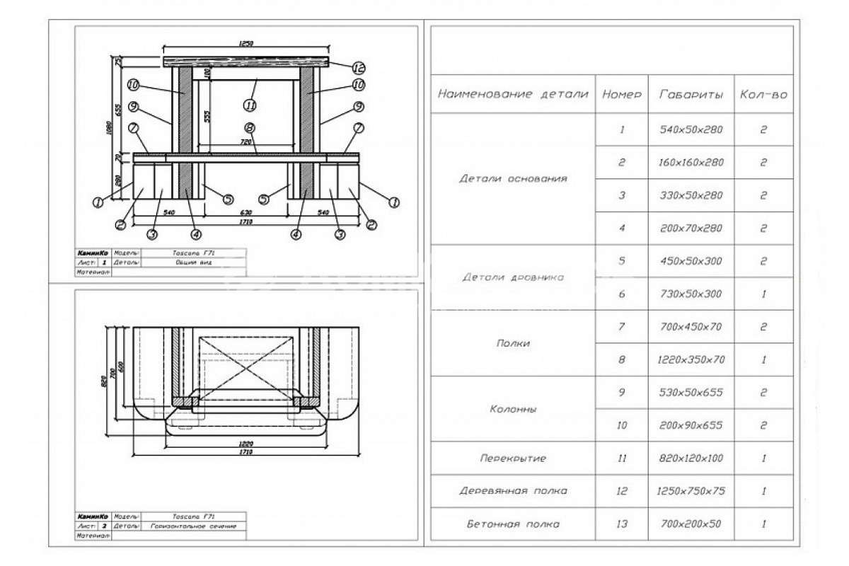 Ракушечник Dordogne, мрамор Rojo Alicante, полка из дуба. Параметры: Высота 108 см Ширина 171 см Глубина 82 см