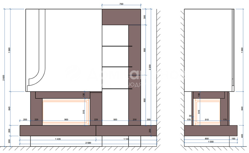 Расположение: пристенный