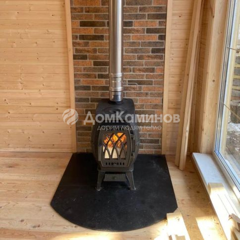Для печи весом 106 кг не нужно стоить фундамент. Достаточно положить под дно лист из жаропрочной стали или огнеупорную плиту, что помимо защиты от возгорания позволяет распределить вес конструкции по полу и снизить нагрузку на перекрытия. Серьезную подготовительную работу придется проделать, только если в доме тонкий деревянный пол на лагах с большим шагом. В этом случае лучше разобрать участок, где будет стоять печь, и усилить основание.