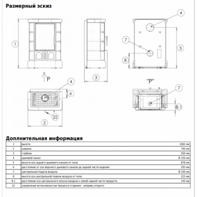 Диаметр дымохода (мм): 150