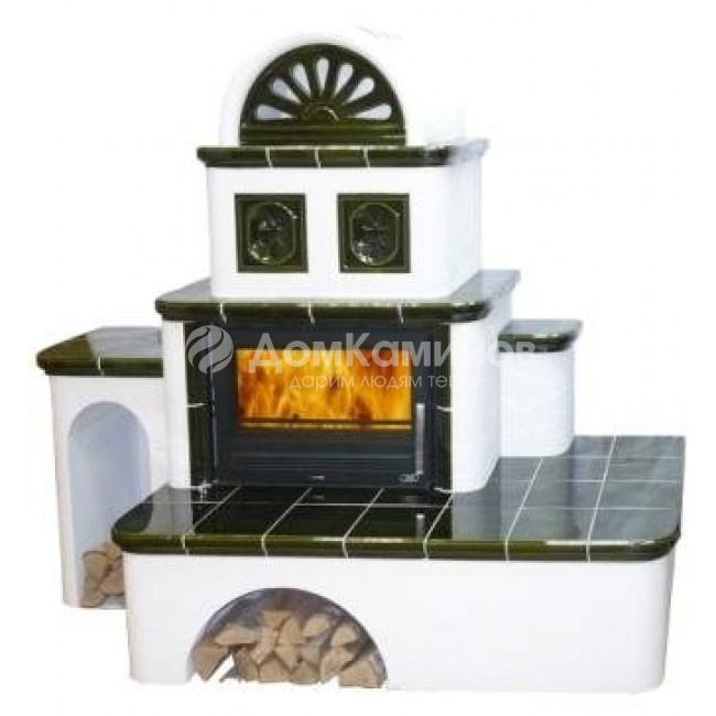Печь камин ABX OXFORD (7 кВт в воду) – вставка СТАЛЬНАЯ – это изразцовая европейская модель, предназначенная для работы на сухих дровах лиственных пород дерева или брикетах. Чешская компания ABX выпускает камины и печи с 1993 года, её продукция в основном представлена на рынках Европы и США, теперь камины ABX доступны и в России качество исполнения продукции компании ABX держится на высочайшем уровне. Печью камином можно отопить помещение от 150 до 340 кубических метров, тепло в помещение поступает через стекло дверцы прямым излучением тепла и посредством конвенции, холодный воздух поступает снизу печи и проходя через пространство между топкой и облицовкой выходит через конвекционные отверстия уже горячим. Вес печи в 320 кг, это небольшой вес, поэтому не требуется дополнительное усиление пола под печь, однако если у вас в доме тонкий деревянный пол на лагах с большим шагом, то тогда придется разобрать участок, где будет стоять печь и усилить основание. Максимальная длина поленьев для загрузки в топку 540 мм. Топка печи выполнена из долговечной и высококачественной стали, а через большое стекло удобно присматривать за огнем и любоваться играми пламени. Огнеупорное стекло (стеклокерамика) выдерживает температуру до 750 градусов. Кафельная облицовка печи очень долговечна, не подвержена старению и выдерживает высокие перепады температур. Вермикулитная облицовка дна и стенок топки предохраняет сварную конструкцию от воздействия тепловой нагрузки. Топка печи имеет систему вторичного дожига. Главная особенность системы вторичного дожига заключается в следующем, сначала сгорают дрова, а затем остаточные продукты горения, это дымовые газы с твердыми частицами. Топка печи имеет систему вторичного дожига. Уменьшая приток воздуха, можно перевести печь в режим длительного горения, увеличивая время горения дров. Дровяная кафельная печь с водяной рубашкой (или контуром) предназначена для отопления загородного дома за счет циркуляции горячей воды (или антифриза). Печь подсоединяется к батареям центрального отопления. Работает система следующим образом: теплоноситель нагревается в топочной камере, которая одновременно является котлом, далее «выталкивается» в трубы, а через них в радиаторы, проходит по всему дому, отдавая энергию, затем уже в остывшем виде возвращается обратно в печь камин. Для лучшей циркуляции воды (антифриза) по закольцованной системе используется специальный насос, для защиты оборудования от последствий перегрева - расширительный бак. Печь камин ABX OXFORD (7 кВт в воду) вставка СТАЛЬНАЯ – по волшебному преображает привычные домашние декорации, добавляя загадочности и уюта, а изменчивые огненные языки пламени за стеклянной дверцей печи, не только обогревают помещение, но отражаются на стенах, представляя театр теней у вас дома. Различные варианты цветовых исполнений камина, позволят подобрать вариант, который наиболее гармонично впишется в интерьер.Печь камин настолько качественно сделана, что компания производитель ABX даёт на неё гарантию 5 лет.