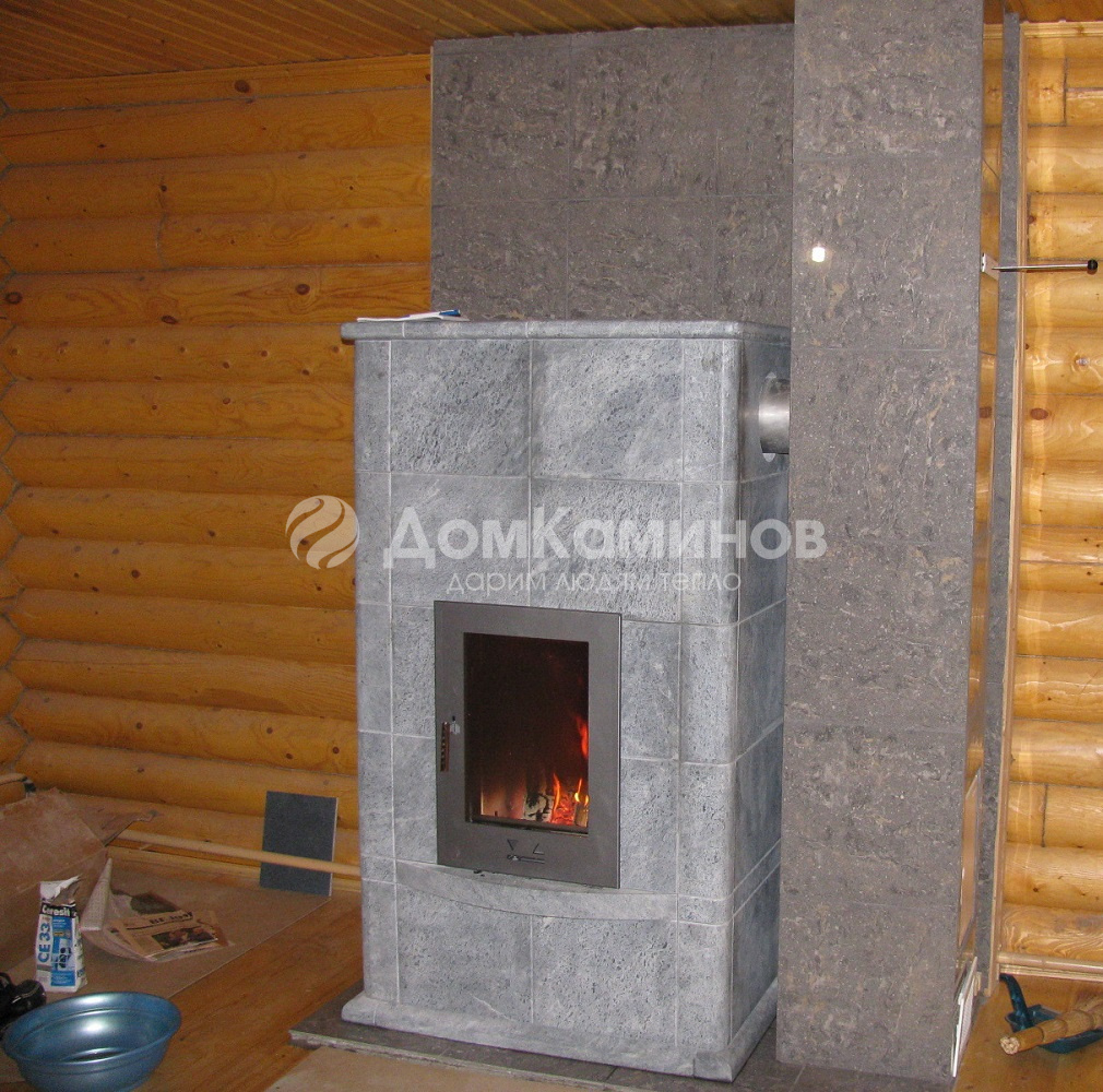 Высокий КПД (83-85%). Дымовые газы идут не вверх, как в обычном камине, а проходят по специальным каналам из плотного тяжёлого шамота. Максимально взятая тепловая энергия дров остаётся в камне и идёт на обогрев помещения, а не уходит в атмосферу.