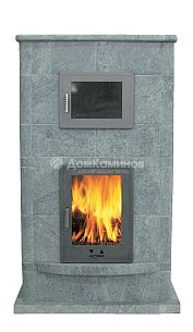 Высокий КПД (83-85%). Дымовые газы идут не вверх, как в обычном камине, а проходят по специальным каналам из плотного тяжёлого шамота. Максимально взятая тепловая энергия дров остаётся в камне и идёт на обогрев помещения, а не уходит в атмосферу.