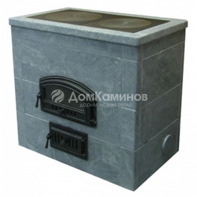 - Высокий КПД (83-85%). Дымовые газы идут не вверх, как в обычном камине, а проходят по специальным каналам из плотного тяжёлого шамота. Максимально взятая тепловая энергия дров остаётся в камне и идёт на обогрев помещения, а не уходит в атмосферу.