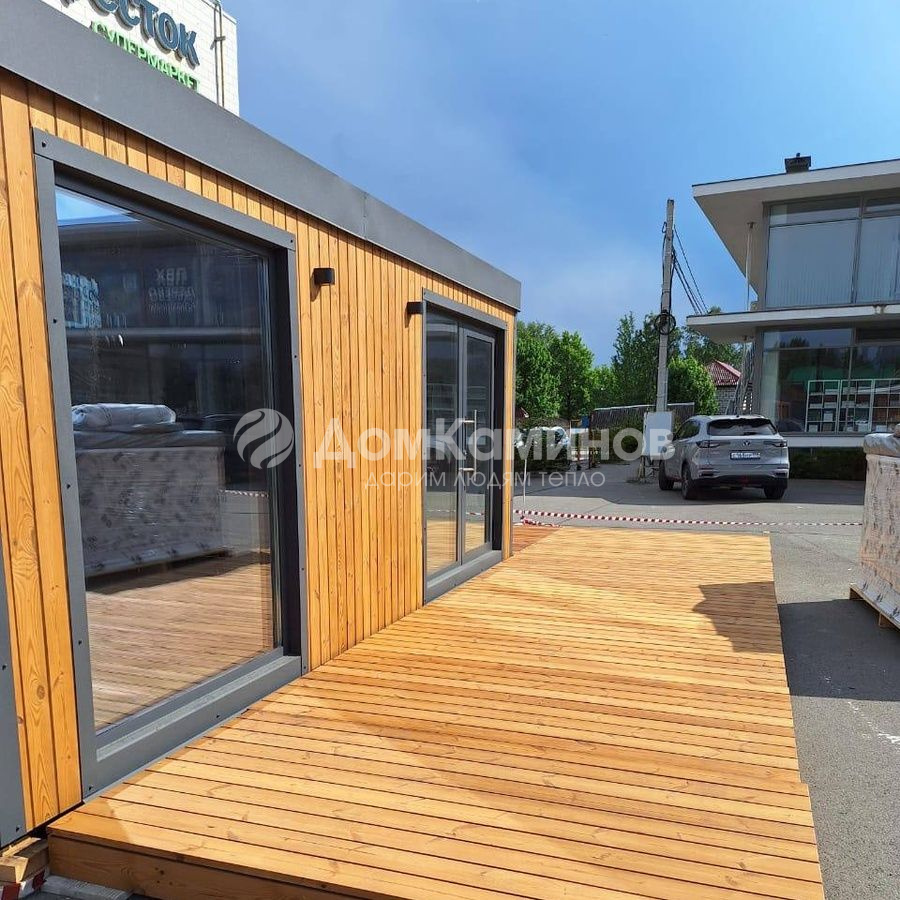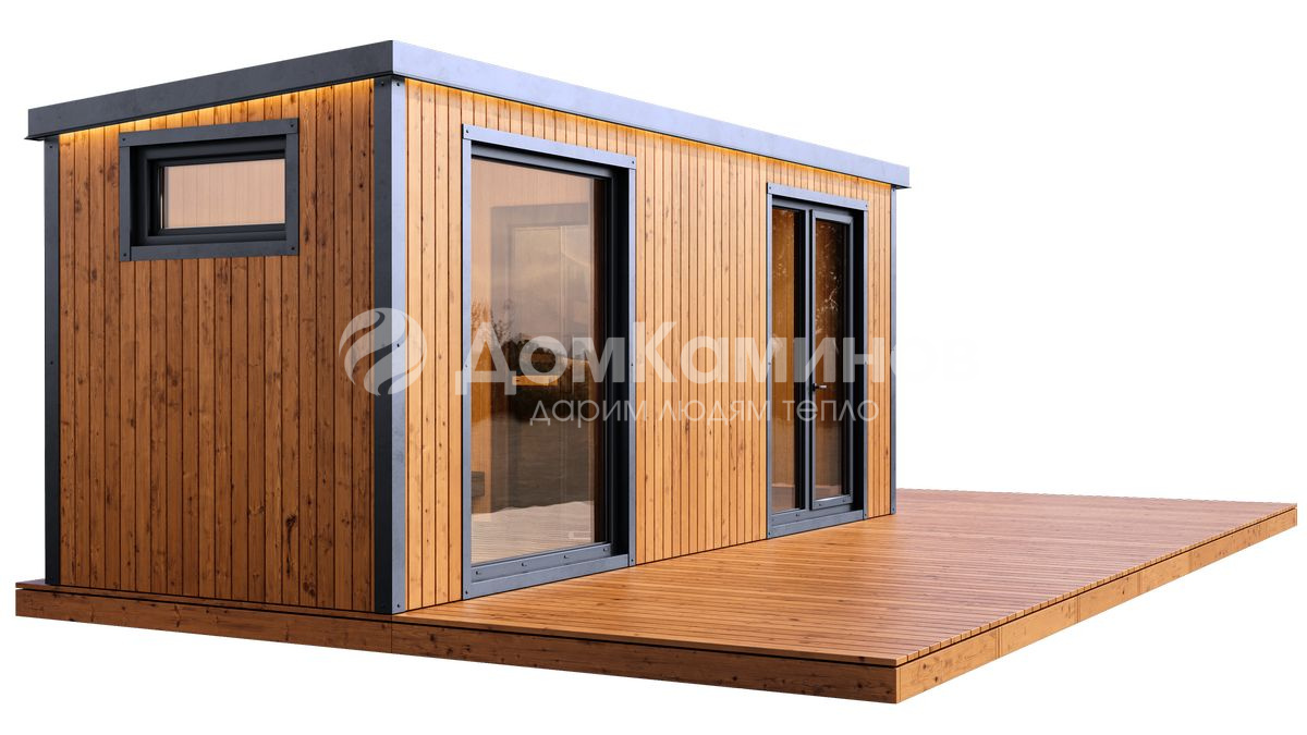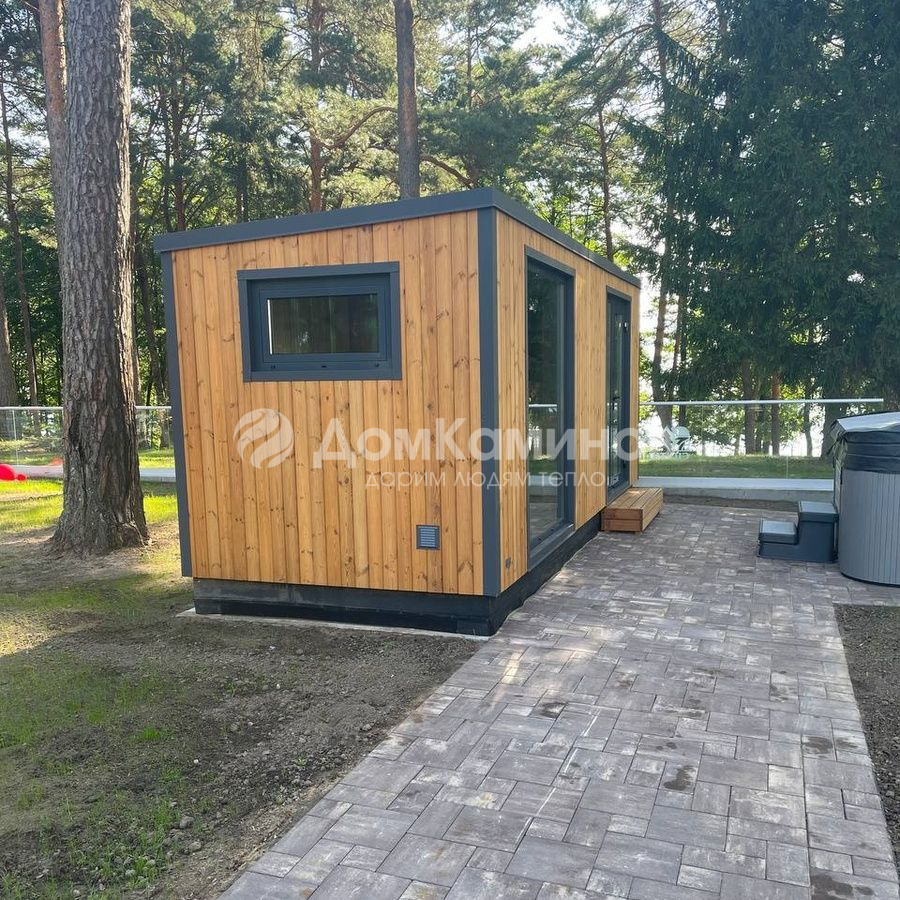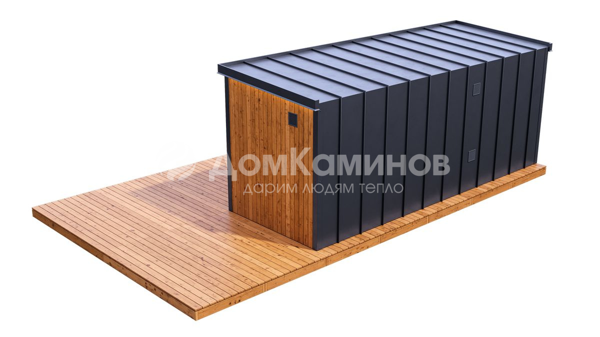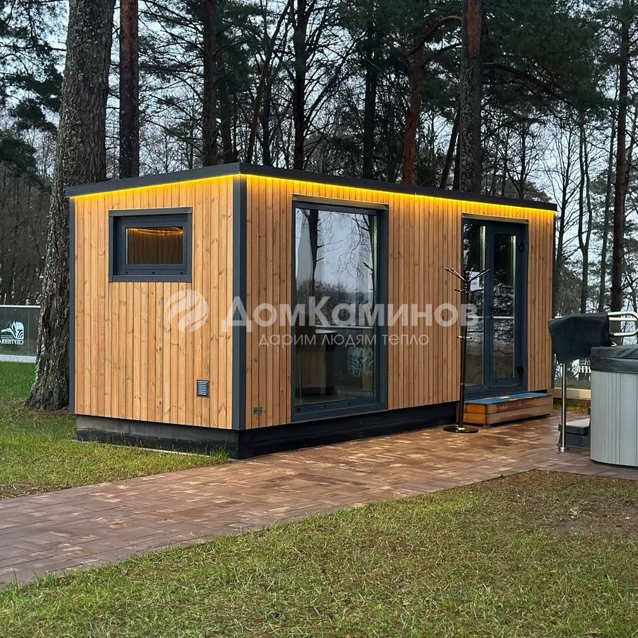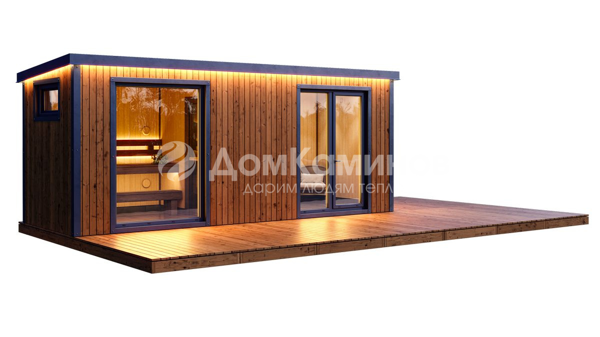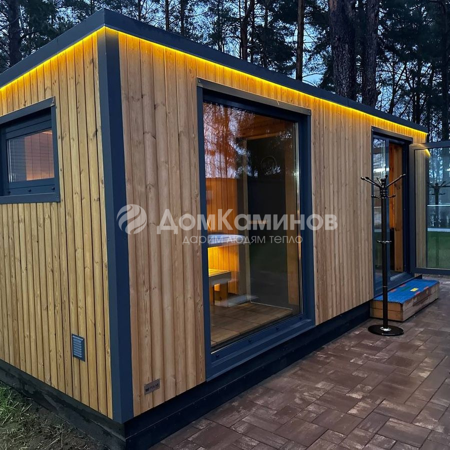 Модульная баня М6 (6 м) с электрической или дровяной печью на выбор, созданная для загородного участка.