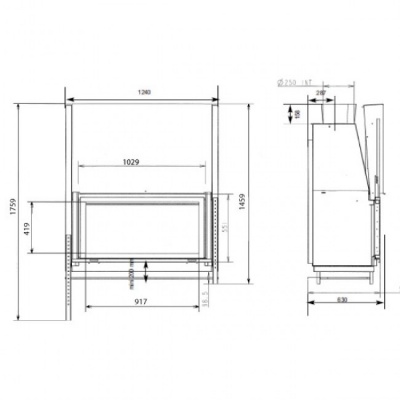 Ширина (мм): 1235 Глубина (мм): 615 Мощность (кВт): 11 Вес (кг): 414 Диаметр дымохода (мм): 250 Стекло: Прямое |
