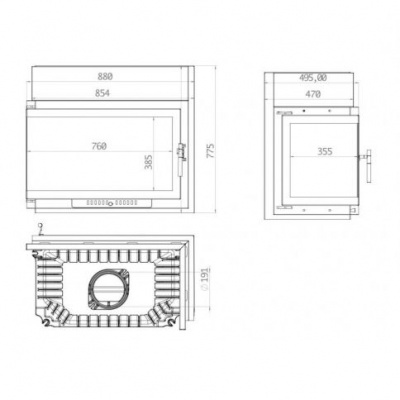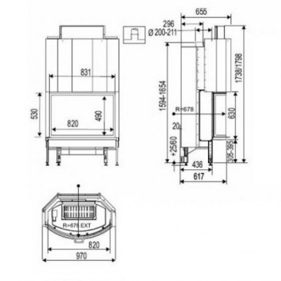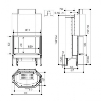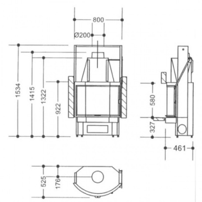 Ширина (мм): 970 Глубина (мм): 617 Вес (кг): 294 Диаметр дымохода (мм): 200 Стекло: Панорамное КПД (%): 80 |